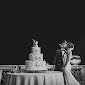 #bride #love #women #smiling #happiness #cheerful #men #black_and_white #restaurant #sitting #monochrome #food #cake #tie #wedding_cake #horizontal #monochrome_photography #cake_cutting